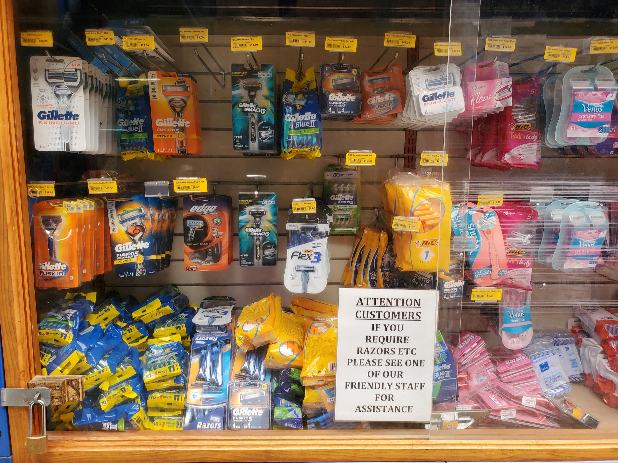 Then off to the supermarket to replace a broken razor. In the Cook Islands, Bic disposable razors and the like are locked away for safety reasons. 😮