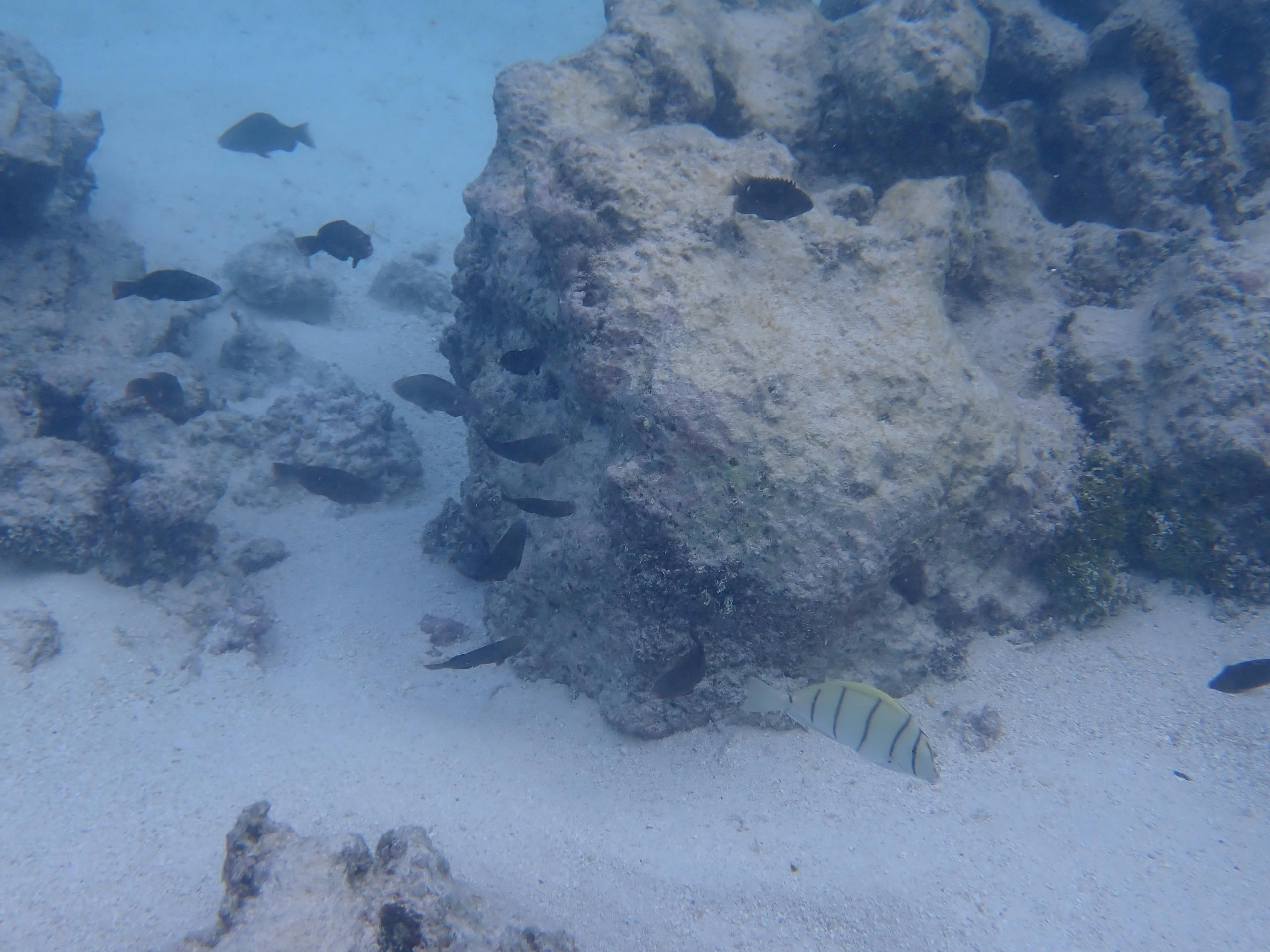In the afternoon, I went for a kayak on my lagoon. Sunny spells and a few spots of rain (!). Apparently it can rain quite a bit here, but this is the dry season. It clouded over a bit when I went snorkelling, so I expect to get some better photos on a sunnier day.